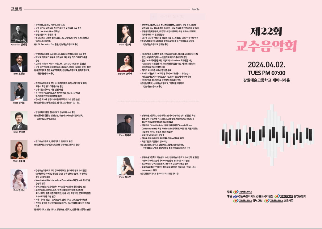 제22회 강원예술고등학교 교수음악회 개최카테고리 없음 2024. 3. 28. 23:22