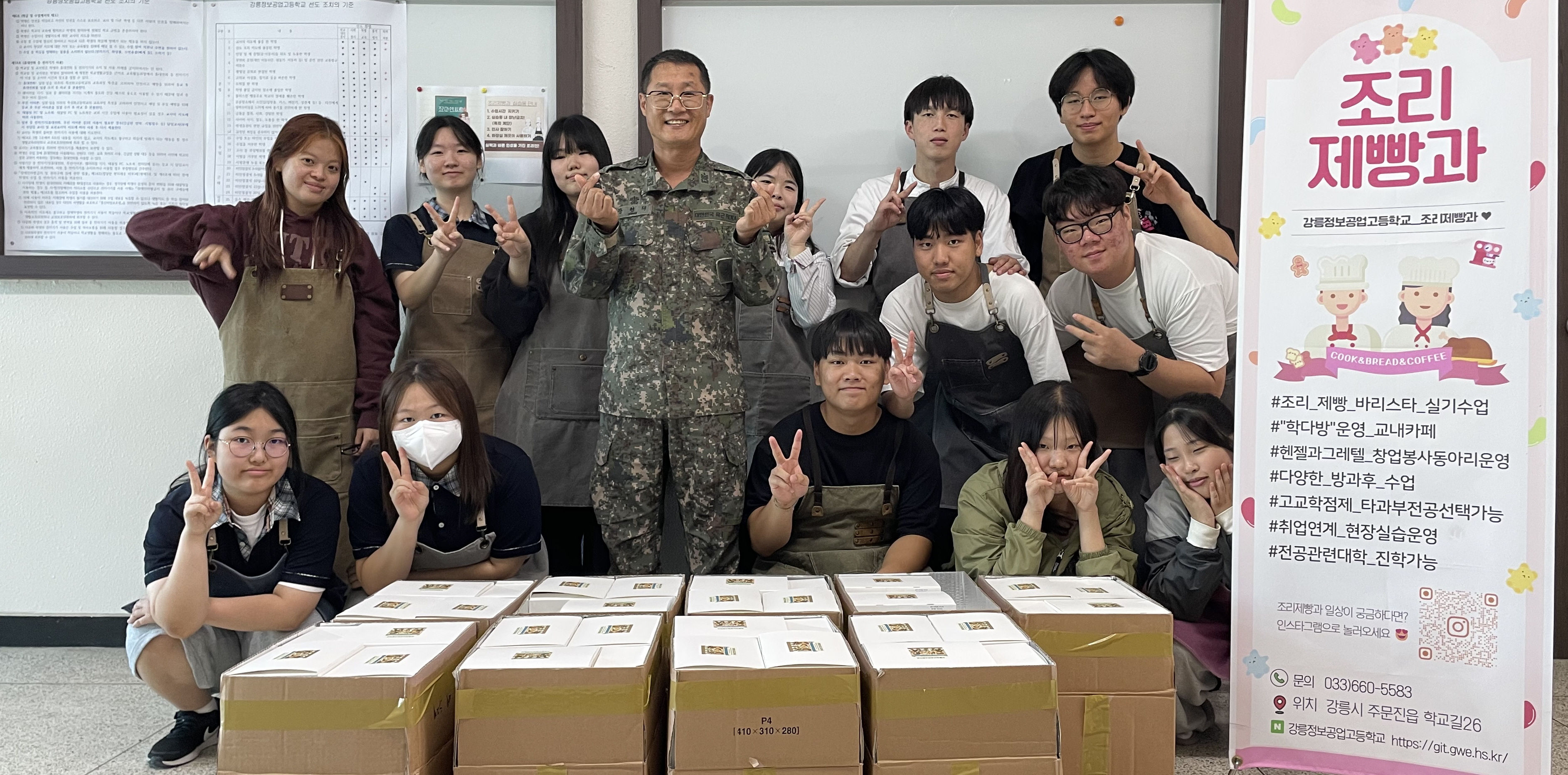 이어 학생들이 직접 만든 과자세트에 마들렌, 초코머핀, 사브레 쿠키, 르뱅 쿠키, 스콘, 타르트 등 정성 가득한 다양한 제품이 포함했으며, 150개를 제작해 이번 재난구호 활동에 참여한 철벽부대에 전달했다.