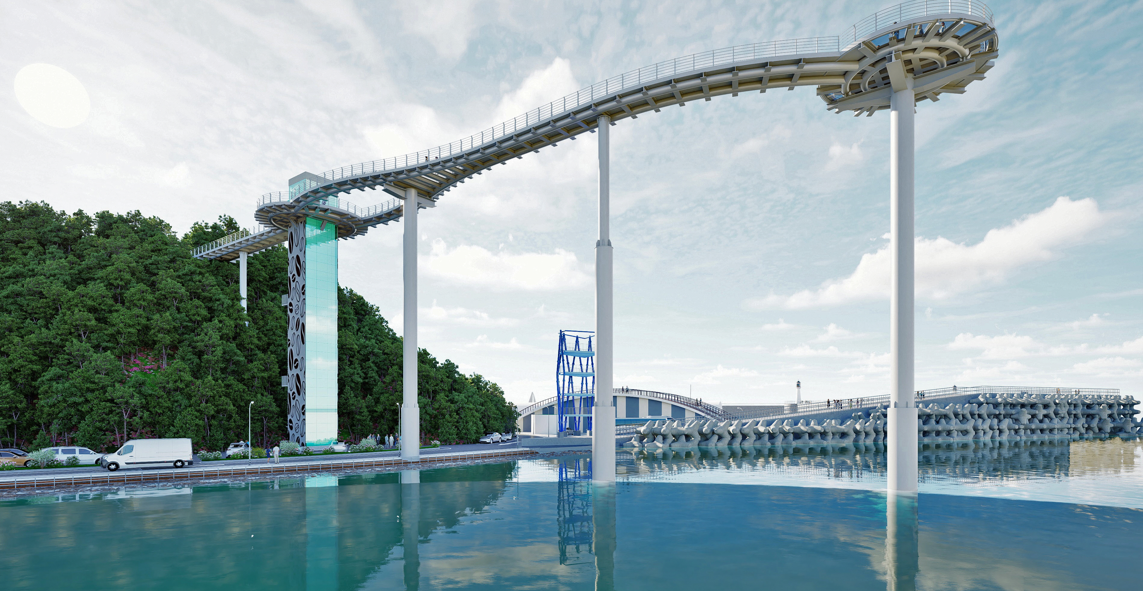 특히 길이 108m, 높이 30m 규모의 스카이워크를 조성해 안목해변과 남항진해변, 죽도봉 등 동해안 주요 경관을 한눈에 조망할 수 있는 해안형 관광 인프라를 구축하는 것이 핵심이다.